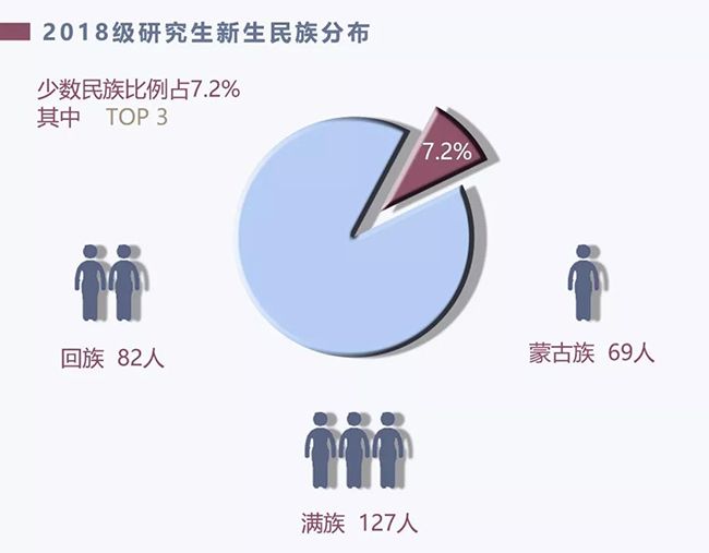 本屆新生中少數民族同學占比7.2%,其中,滿族、回族和蒙古族同學占比最多。各民族同學將在園子里互幫互助,共同學習。