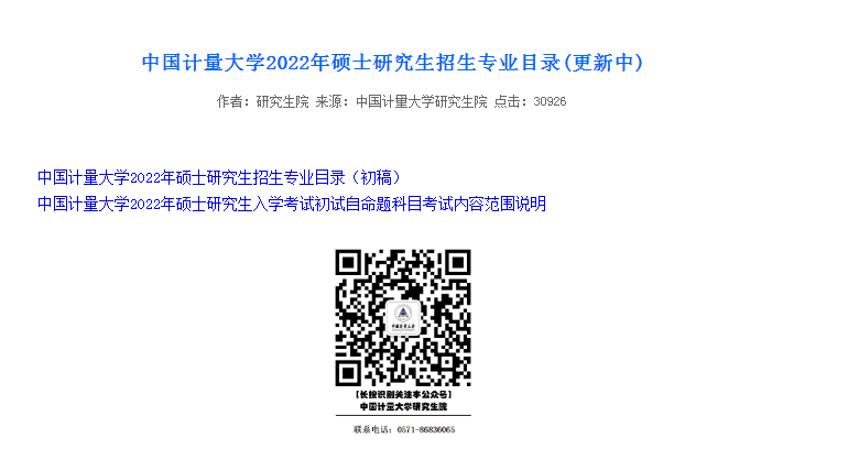 中國計量大學2022年碩士研究生招生專業目錄(更新中)
