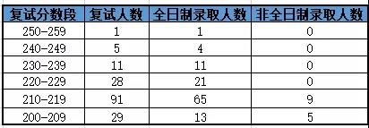 復試分數線208分,一志愿全日制和非全日制進入復試共165(未區分非全和全)人,全日制錄取115人,非全日制錄取14人;復試最高分255分,最低分208分;全日制錄取初試最高分255分,最低分208分;非全日制錄取初試最高分219分,最低分209分。