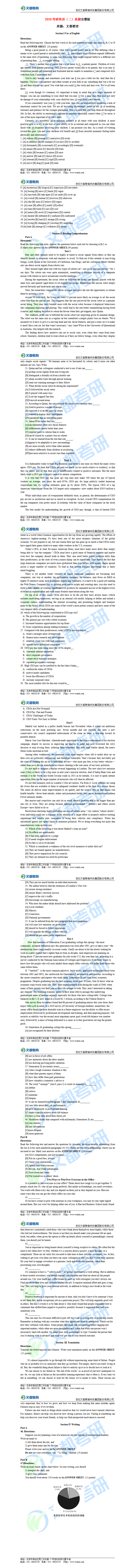 伴隨著2020考研英語的結束,考研科目已經過去了一大半,同時文都考研網為大家帶來了2020考研英語真題,備受大家關注的2020考研英語(二)真題完整版也出爐了,如果你還不清楚,不妨看看2020考研英語(二)真題完整版的文章,如有需要及時加入陜西文都20考研交流群, 陜西文都考研網持續為您提供考研所需的相關指導信息。20考研資料共享:【互動可加群】丨官方網站【@陜西文都考研】