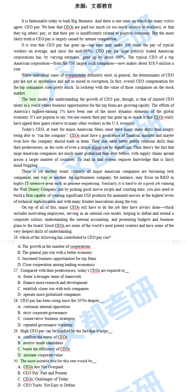 令人矚目的2020考研筆試終于在今天開始了,同學們結(jié)束了考研英語真題,感覺如何呢?無論如何,同學們首先要做的就是保持好心態(tài),明天還需繼續(xù)加油。文都考研老師給大家準備了2020考研英語二真題閱讀理解Text 2,如果你還不清楚,不妨看看2020考研英語二真題閱讀理解Text 2的文章,如有需要及時加入陜西文都20考研交流群, 陜西文都考研網(wǎng)持續(xù)為您提供考研所需的相關(guān)指導信息。20考研資料共享:【互動可加群】丨官方網(wǎng)站【@陜西文都考研】