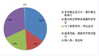 由圖可知,本科畢業(yè)就業(yè)壓力增加成為報(bào)考在職研究生的重要原因,已工作在職人士,提升技術(shù)能力也是報(bào)考在職研究生重要原因之一。