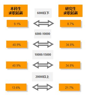 由圖可知,獲得研究生學(xué)位求職薪資起點(diǎn)要高于本科學(xué)歷的求職者。
