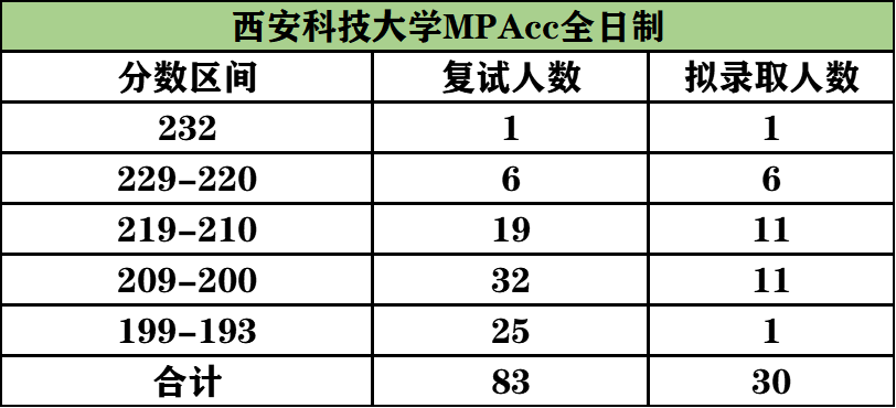 復試分數線193分,復試最高分232分,最低分193分。計劃招生30人,參加復試83人,錄取30人;錄取初試最高分232分,最低分193分。