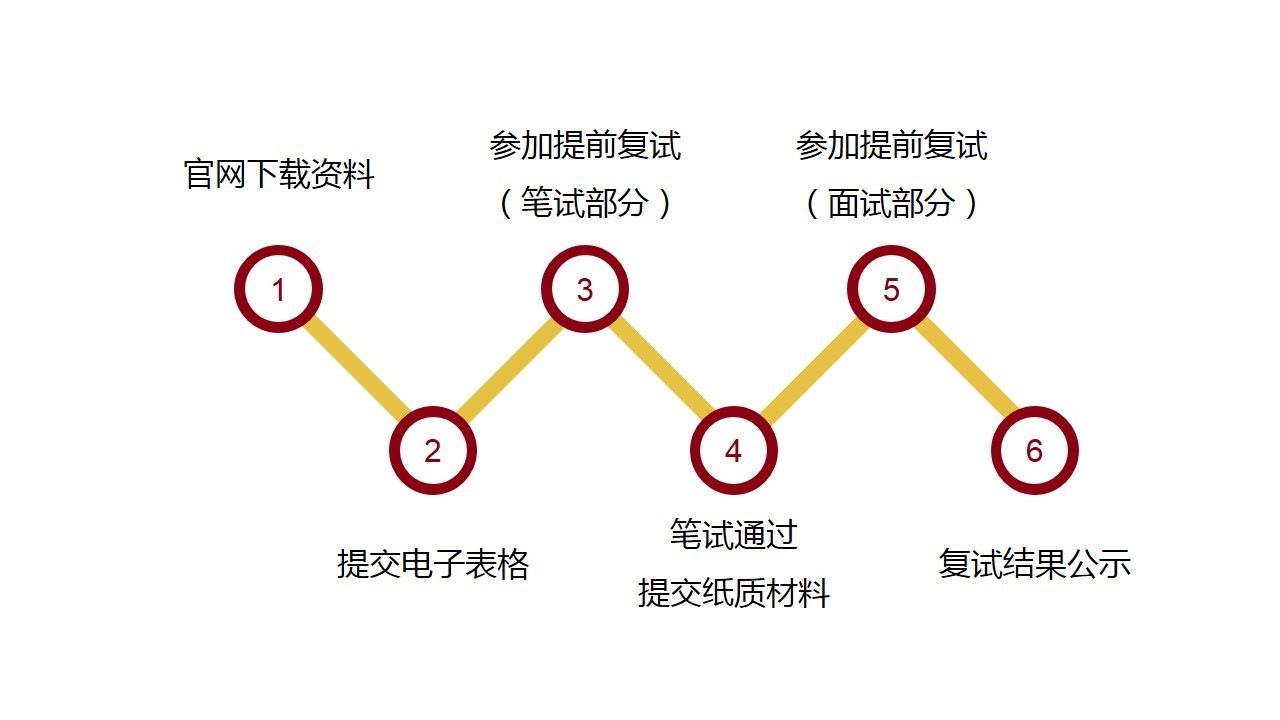 全部申請人都須在規(guī)定時間內(nèi)提交申請材料,經(jīng)過材料評審,擇優(yōu)給予申請人提前復(fù)試資格。通過提前復(fù)試(包括面試與筆試)將給予部分申請人“有條件錄取”及“候補(bǔ)錄取”資格。