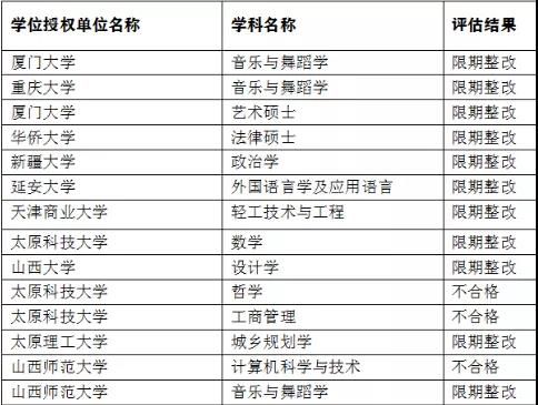 今年4月份教育部下發了一份名為授權點合格評估結果及處置意見的通知,下面是部分“限期整改”的高校及專業名單↓