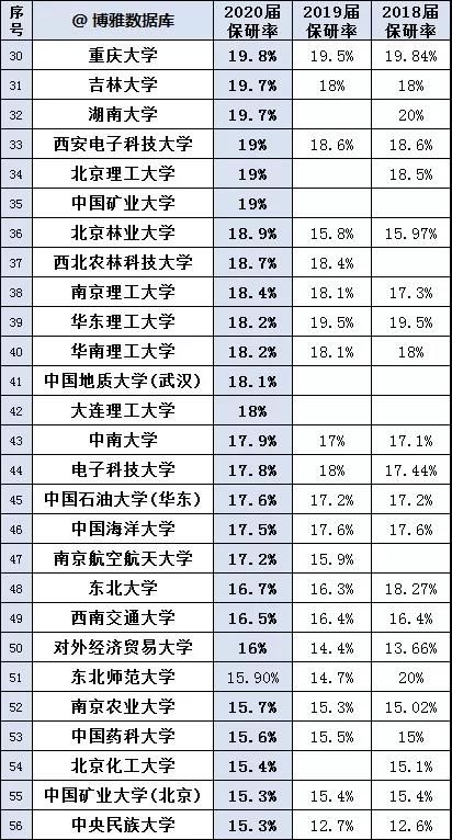 保研率最高的是北京大學醫學部,高達65%。超過了學生總數的一半!要知道北京大學醫學部在高考時候就是單招,一般來說考入北大醫學部的本科生大部分會直接讀本校碩士,保研率高就可以理解了。