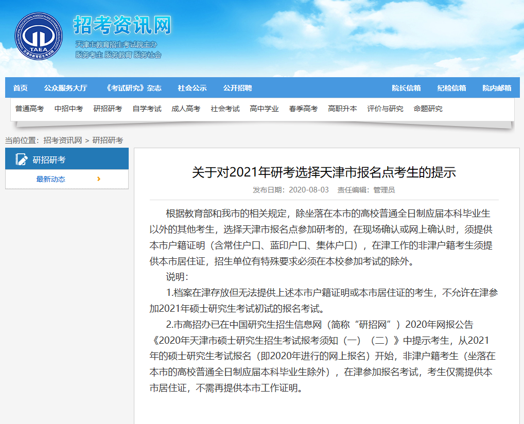 報考點的選擇,是每年考研大家都需要關(guān)注的問題。近日,天津市就公布了《關(guān)于對2021年研考選擇天津市報名點考生的提示》。