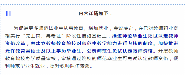 教育類碩士及以上學(xué)歷畢業(yè)生、公費(fèi)師范生免試認(rèn)定教師資格!