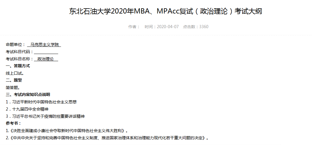 2020年MBA、MPAcc復(fù)試(政治理論)考試大綱