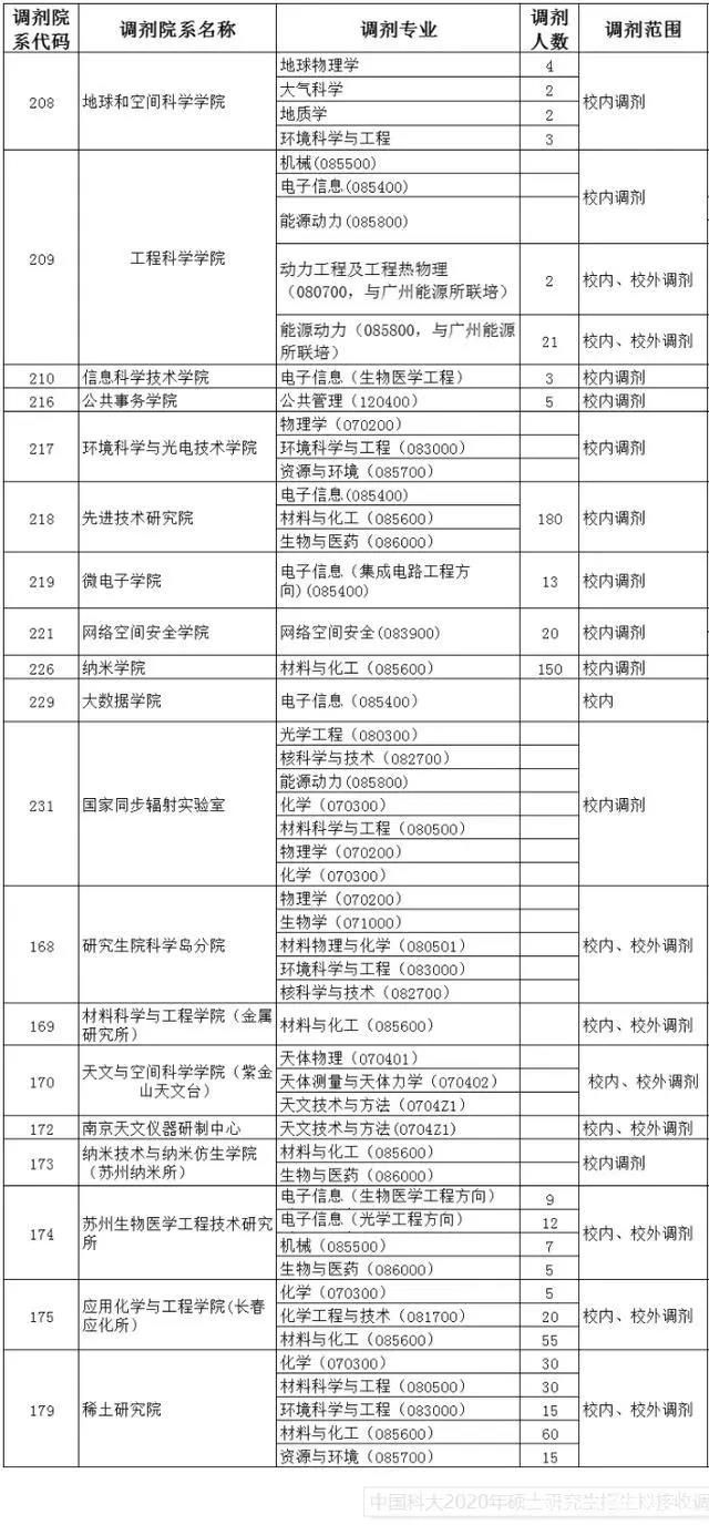 中國科大2020年碩士研究生招生擬接收調(diào)劑匯總表(包含校內(nèi)調(diào)劑),多個院校都接受校內(nèi)調(diào)劑