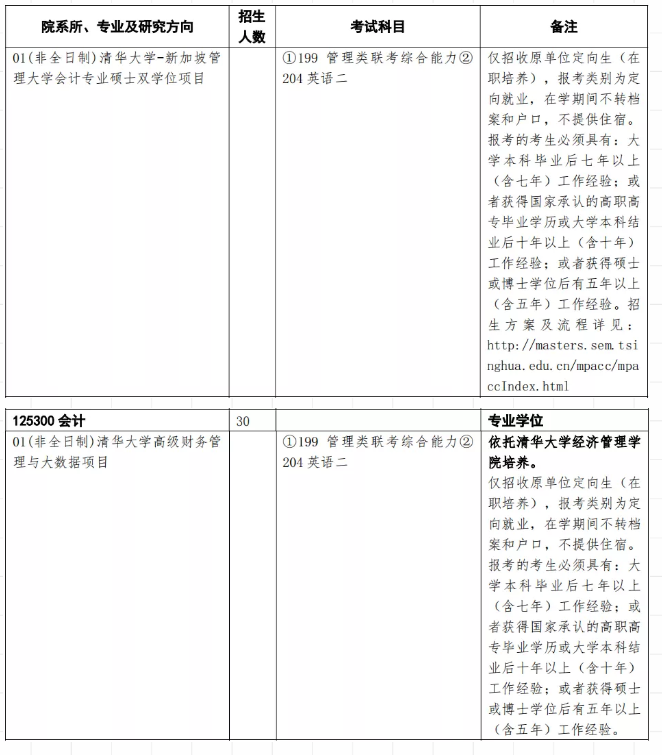 當然,部分院校在招生簡章中明確說明,非全日制MPAcc需要工作經驗,以下7所:清華大學、北京國家會計學院、天津財經大學、同濟大學、東南大學、山東財經大學,都是有相關的政策規定的。