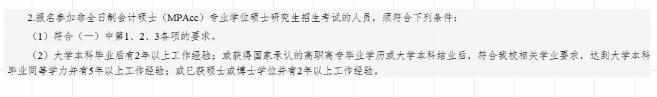 所以,可以看出來大部分院校,對于非全MPAcc應屆生還是蠻友好的,規定并沒有那么嚴苛,也不會太要求工作經驗。